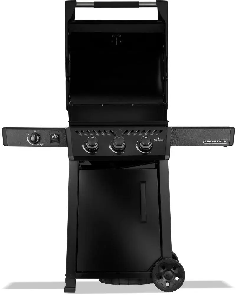 De Freestyle™ 365 propaangasbarbecue met aparte zijbrander is een compacte grill met premium functies en een onklopbare prijs. Met betrouwbare JETFIRE-ontsteking waarmee de hoofdbranders probleemloos met een eigen, krachtige ontstekingsvlam worden aangestoken. Schroei het vlees perfect dicht boven de gietijzeren grillroosters met porseleincoating. Drie RVS branders bieden gelijkmatige warmte die eenvoudig geregeld kan worden en gecontroleerd met de ingebouwde thermometer. Bereid bijgerechten tijdens het grillen met de aparte zijbrander Dankzij de robuuste wielen kan deze barbecue overal naartoe worden gereden, waar hij maar nodig is, terwijl de eenvoudig inklapbare zijtafels met gereedschapshouders en flessenopener ervoor zorgen dat de Freestyle™ bij uw levensstijl en ruimte past.