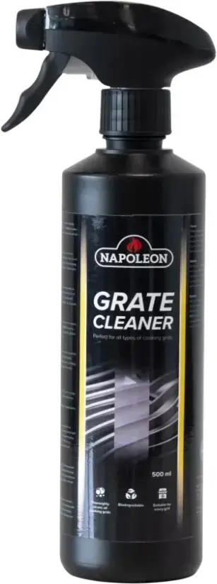 Maak je grillroosters moeiteloos schoon! De Napoleon Roosterreiniger is ontworpen om het schoonmaken van je grillroosters te vereenvoudigen. Het verwijdert effectief vet en resten, zodat je roosters fris en klaar voor gebruik zijn. Geschikt voor alle soorten Napoleon-roosters: geëmailleerd gietijzer, roestvrij staal en gegoten roestvrij staal. Instructies: Spuit de Napoleon Roosterreiniger op de grillroosters. Laat het 2–3 minuten inwerken. Spoel de reiniger van de roosters af. Voor gietijzeren roosters: breng na het schoonmaken opnieuw een beschermlaag aan. Veiligheidsaanbevelingen: Vervoer en bewaar de fles rechtop en op een koele plaats. Als medisch advies nodig is, houd dan de verpakking of het etiket van het product bij de hand. Buiten bereik van kinderen bewaren.