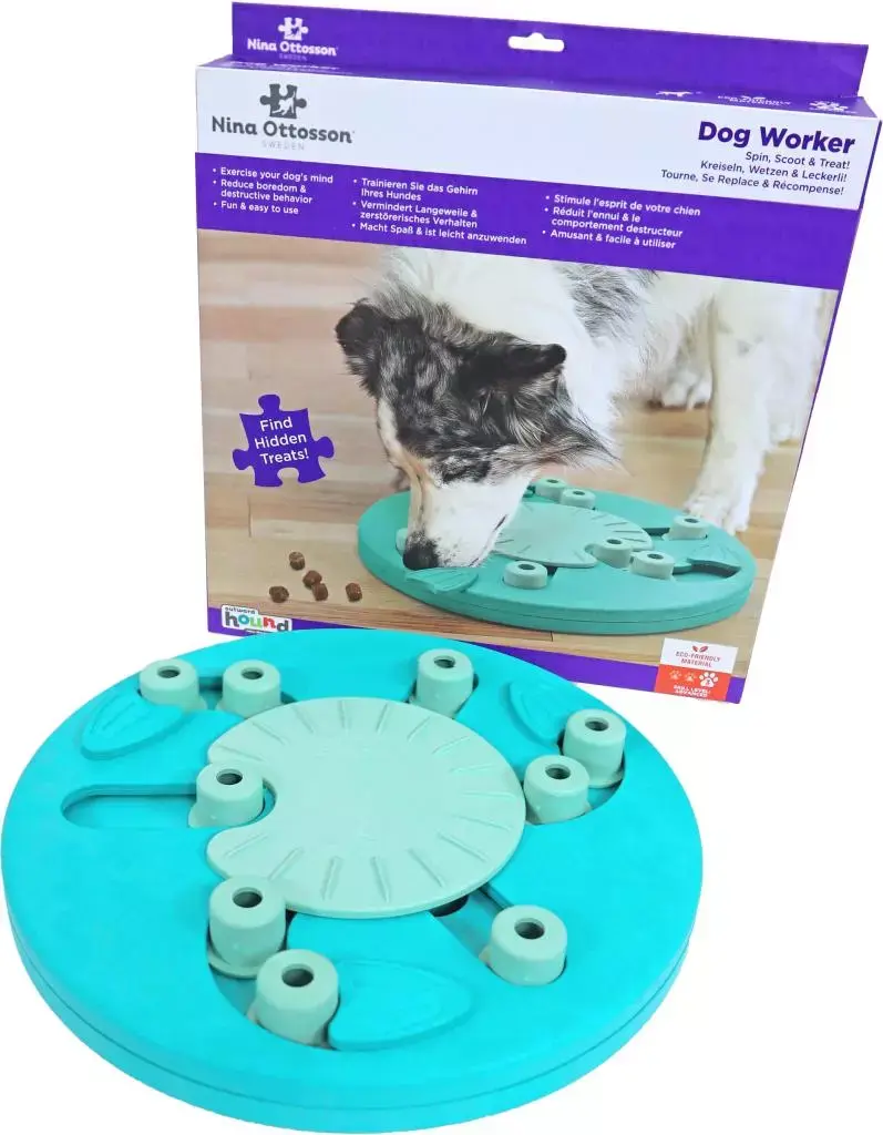 De Nina Ottosson dog worker is de ultieme oefening om te leren en te spelen, kan worden gevuld met snoepjes om de geest van je hond te oefenen en de band tussen jou en je hond te versterken door interactief spelen. Kijk hoe je hond erachter komt hoe hij een puzzelmeester moet zijn. Als het gaat om het trainen van honden, zijn hondenspellen een geweldige manier om uw hond te betrekken en te vermaken terwijl ze nieuwe vaardigheden leren. Ongeacht de leeftijd, de grootte of het ras van uw hond, Nina Ottosson hondenspellen zijn net zo interactief als spannend en leuk.