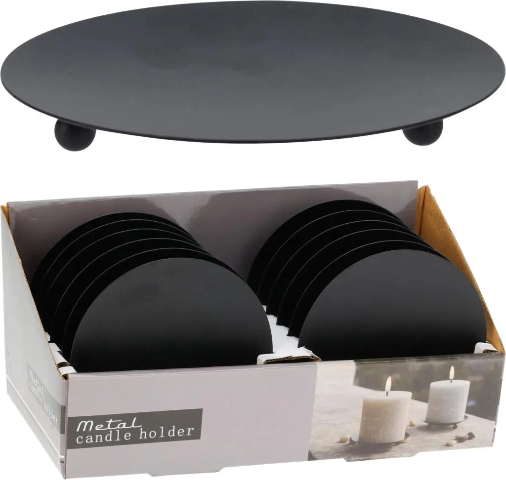 Onderzetter staal kaars 12x1.5cm zwart