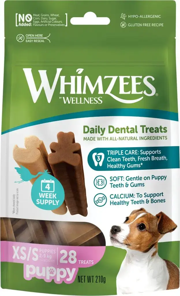 Onze Puppysnacks ondersteunen de orale gezondheid van uw puppy: ze zijn ontworpen om tandplak en tandsteen tegen te gaan. Verkrijgbaar in twee vormen waar uw puppy dol op zal zijn, en in twee maten.