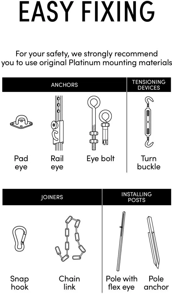 - Bevestigingsringen van hoogste kwaliteit RVS 316 AISI.