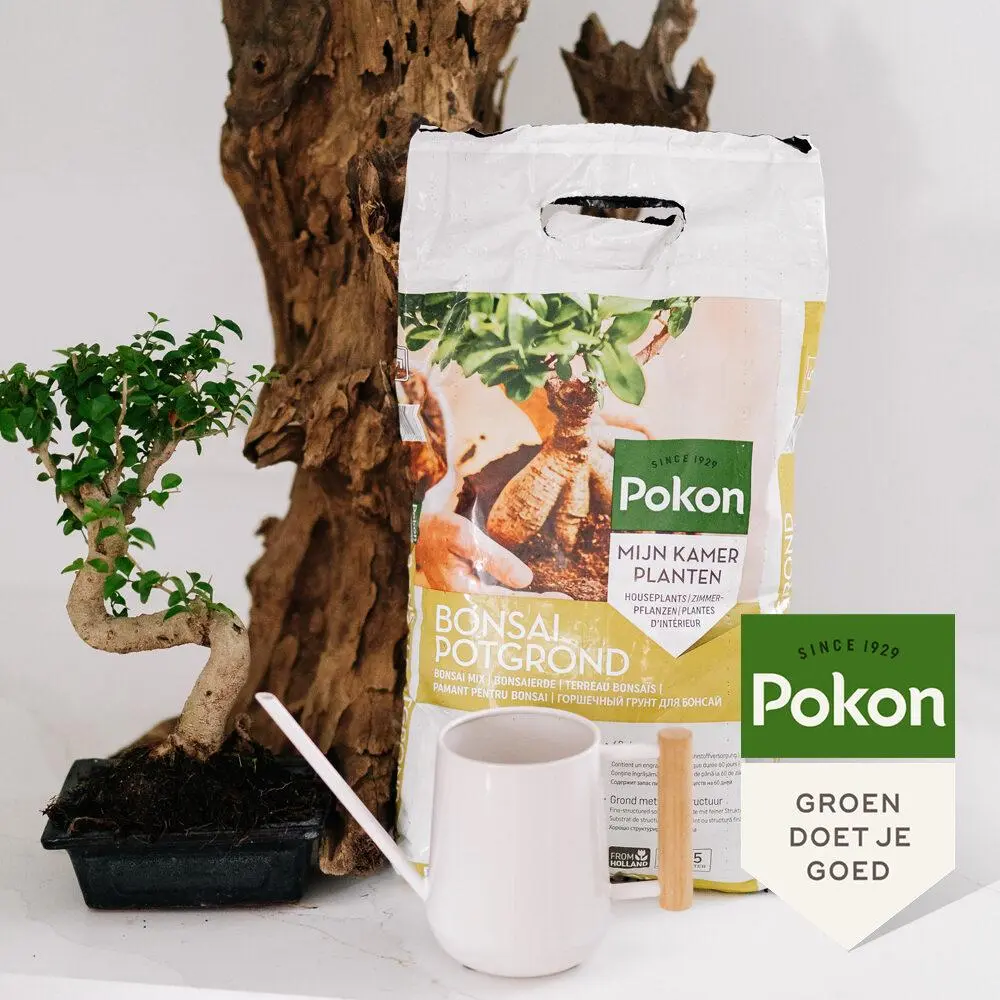 Een bonsai goed laten groeien vraagt om tijd en aandacht. Toewijding, de juiste materialen en de juiste grond zijn de voorwaarden voor succes. Pokon Bonsai Potgrond is geschikt voor alle soorten bonsai. Deze grond bestaat uit de beste en meest hoogwaardige grondstoffen, zoals turfstrooisel, klei, vulka en kalk. Hierdoor heeft de grond een fijne structuur en geeft het bonsai een stevige basis om in een schaal of pot langzaam en evenwichtig te kunnen groeien. Er zit daarnaast voldoende voeding in voor ca. 60 dagen.