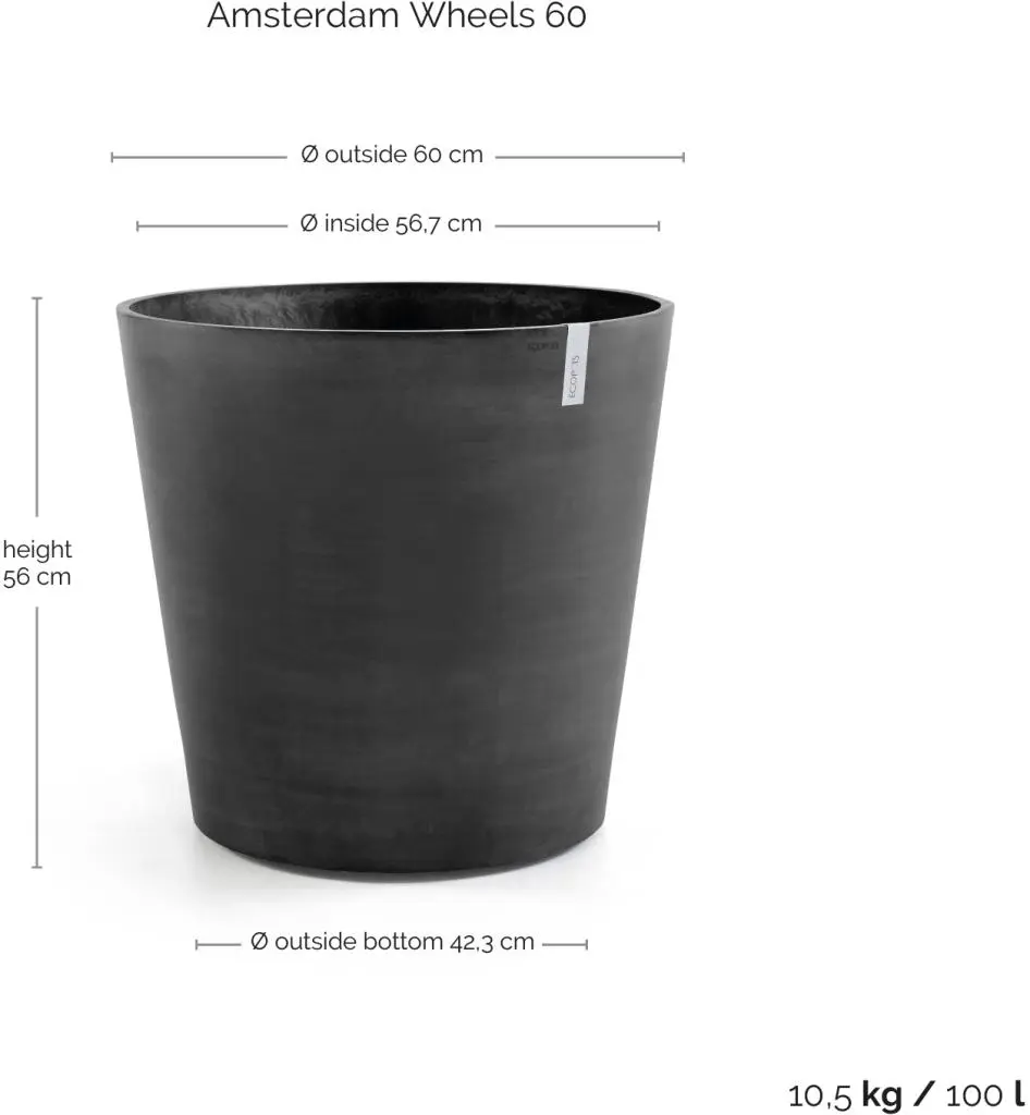 De Ecopots Amsterdam Wheels 60 (Donker Grijs) combineert strak design met praktisch gemak. Dankzij de wielen verplaats je deze royale pot eenvoudig, zelfs gevuld met grote planten. Duurzaam, lichtgewicht en handgemaakt.