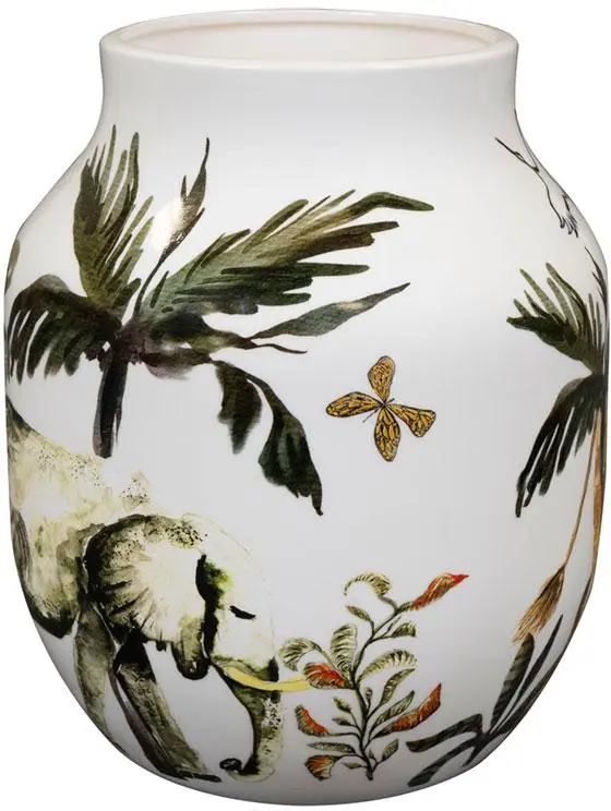 De Pot Safari Dream Ø17x20 cm uit de exclusieve Lammie-collectie van TS Collection is een sfeervolle, decoratieve pot met een unieke tropische print. Deze serie staat bekend om haar artistieke designs waarin flora en fauna samenkomen in warme aardetinten, diepe groenen en subtiele gouden accenten. Dankzij de hoogte van 20 cm is dit model ideaal voor middelgrote kamerplanten die wat extra ruimte of hoogte nodig hebben.