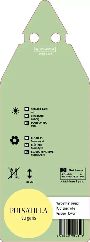 De vaste plant Pulsatilla Vulgaris (Wildemanskruid) is een voorjaarsbloeier. Plant de Pulsatilla Vulgaris op een plek met zon en plaats maximaal 7 planten per vierkante meter. Deze plant heeft een maximale hoogte van 30 cm als volwassen plant. De bloemkleur is lila.