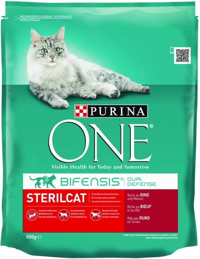 - Purina ONE Sterilcat is qua voedingswaarde afgestemd op gecastreerde/gesteriliseerde katten