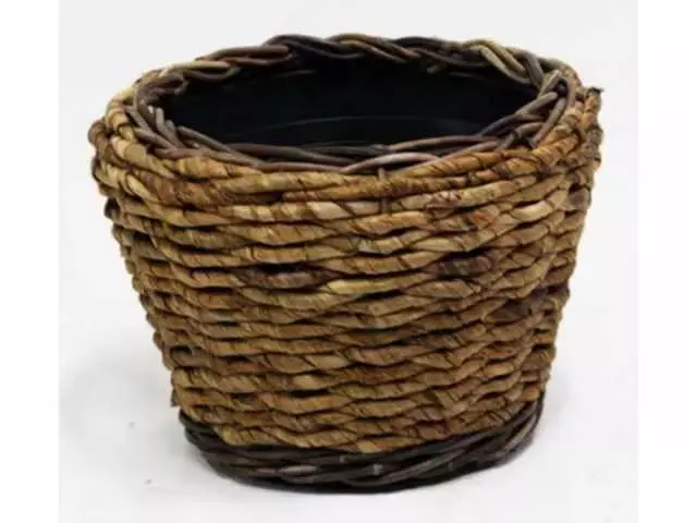 Deze mooie plantenmand is gemaakt van kunststof, rotan, is 28 cm hoog en heeft een diameter/breedte van 36 cm. Deze plantenmand heeft een kunststof inzet-pot waardoor de mand niet door zal lekken en perfect is om binnen te gebruiken!
