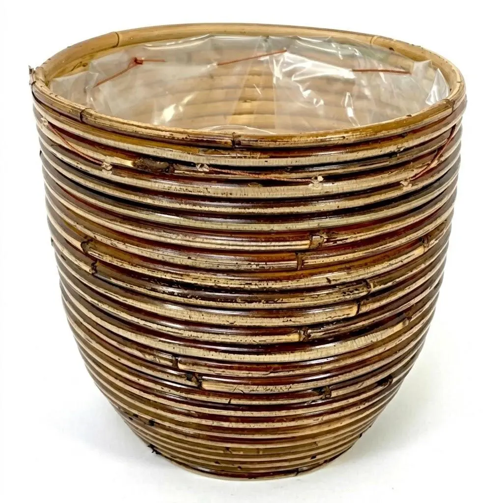 Rotan plantenmand stripe bronze Ø20 x H19 cm