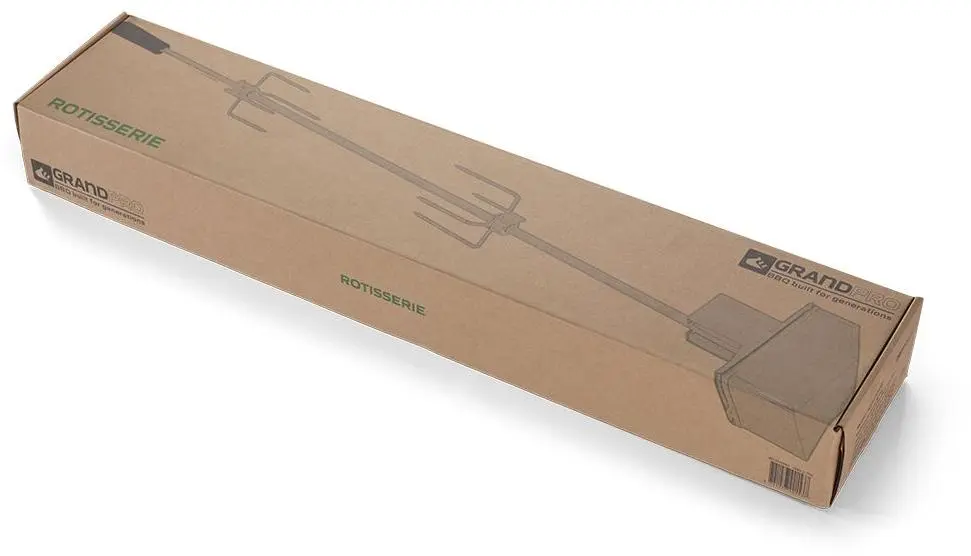 Grote stukken vlees bereiden op de barbecue? De Grandpro Rotisserie maakt het eenvoudig om het vlees gaar en mals te krijgen. Steek het vlees aan de rotisserie, plaats de deksel erover en laat het vlees langzaam garen. De rotisserie is gemaakt van hoogwaardig roestvrijstaal en kan na gebruik weer eenvoudig worden schoon gemaakt. Deze accessoire is geschikt voor buitenkeukens met of zonder achterbrander. Past ook perfect op de Grandhall G-Serie.
