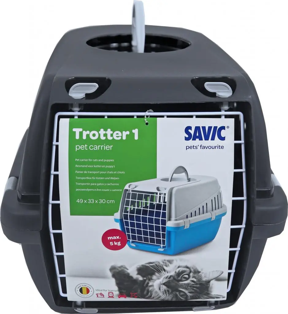 De Savic Trotter 1 is een moderne en handige plastic reismand. De plastic reismand is licht in gewicht en bevat aan de voorzijde een metalen deurtje. Geschikt voor het vervoer van katten, kleine honden, konijnen en knaagdieren.