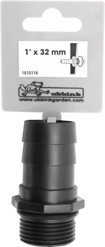 Deze Ubbink slangpilaar heeft een uitwendig 1" schroefdraad en is gemaakt voor het koppelen van slangen met een doorsnede van 32 mm.