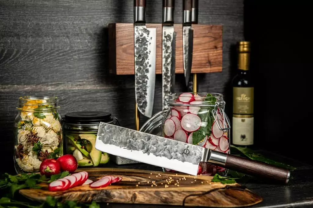 Dit magnetische messenblok van walnoothout op een natuurstenen voet brengt stijl en functionaliteit mooi samen in de keuken. Het vernieuwde ontwerp oogt strak en modern en biedt een elegante plek om je messen overzichtelijk te presenteren.
