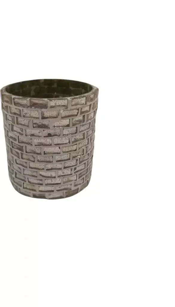 Theelichthouder glas mosaic 6.5x7.5cm zilver