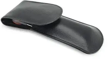 Zwart kunstleder met riemlus voor broekriem en met een metalen drukknop