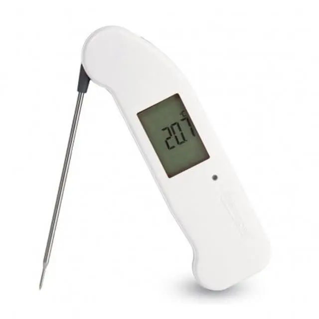 De Thermapen ONE is waterdicht tot IP67 en is voorzien van een roestvaste probe met smal uiteinde die makkelijk 180 graden in te klappen is wanneer je hem niet gebruikt.