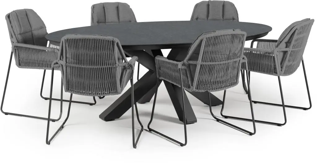 Tierra Outdoor diningset oblong graphite trespa rivera charcoal koop je hier veilig online in de webshop van ons tuincentrum waarbij wij garant staan voor een goede service, beloofd! Heb jij nog vragen over Tierra Outdoor diningset oblong graphite trespa rivera charcoal of de levering ervan? Neem dan gerust contact op met onze klantenservice of kom langs in ons tuincentrum in Amsterdam waar onze medewerkers je graag verder helpen. Tuincentrum Osdorp, alles voor huis, tuin en dier :)