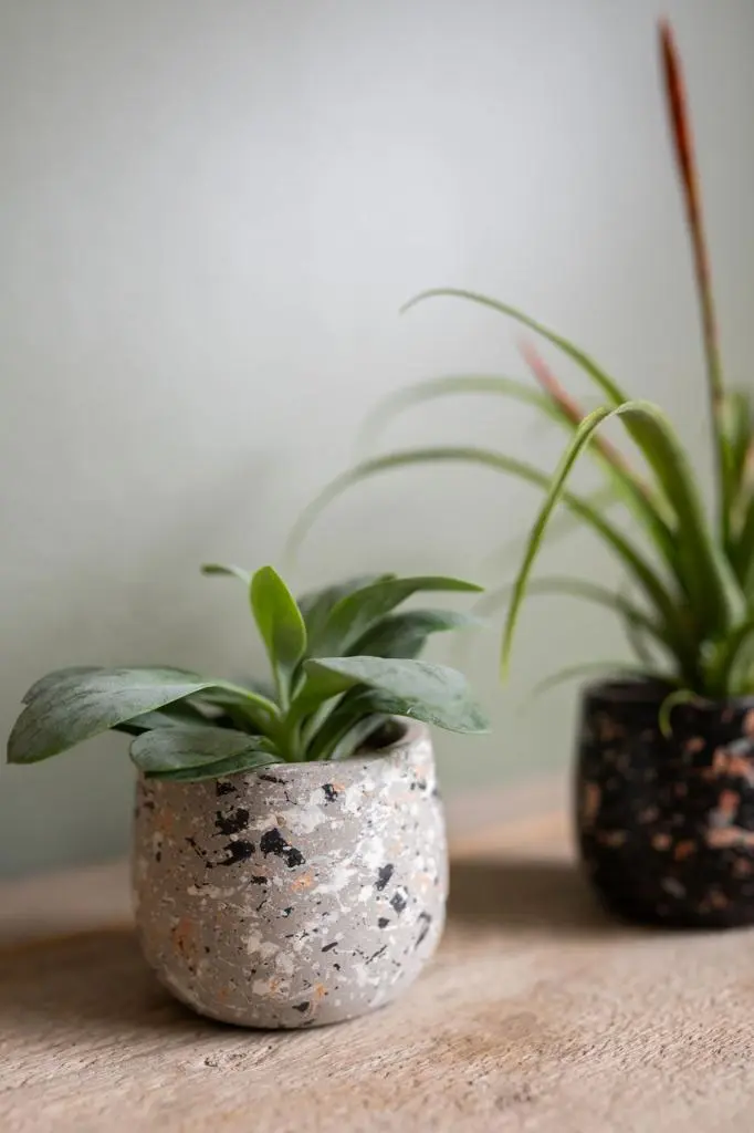 Deze rustieke bloempot met terrazzo structuur weerspiegelt de kracht van minimalisme. Tina, afkomstig uit de Handmade collectie van TS Collection, is vervaardigd uit cement. De terrazzo structuur van Tina harmonieert perfect met de plant die erin geplaatst kan worden. Dankzij het simpele design past Tina goed bij de meeste interieurstijlen.