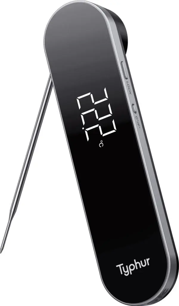 De Typhur InstaProbe Core is jouw geheime ingrediënt voor perfect bereide gerechten. Deze compacte, directe-uitlees vleesthermometer geeft je razendsnel en nauwkeurig inzicht in de kerntemperatuur, of je nu in de keuken staat, achter de BBQ of professioneel aan het werk bent. Het enige wat jij hoeft te doen, is even meten – en je weet direct of je gerecht perfect op temperatuur is.