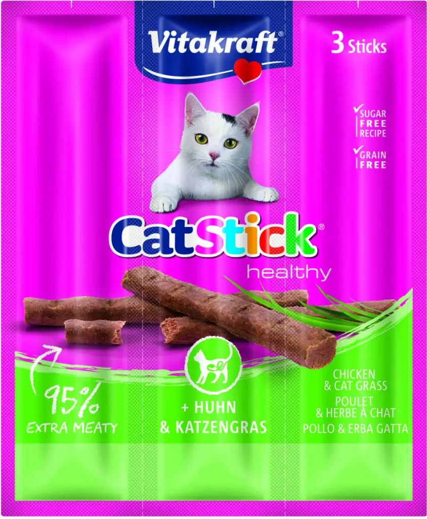 Wil je je kat verwennen én tegelijkertijd zijn gezondheid ondersteunen? De Vitakraft® Cat Stick® Healthy met kip en kattengras is niet alleen onweerstaanbaar lekker, maar bevat ook inuline en kattengras, wat bijdraagt aan een gezonde spijsvertering. Met een hoog vleesaandeel en zonder granen, toegevoegde suikers, kunstmatige kleurstoffen en smaakversterkers is deze snack een verantwoorde keuze. Dankzij de handige afbreekpunten kun je de stick eenvoudig in kleine stukjes verdelen, perfect voor meerdere genietmomenten! Elke stick is individueel verpakt om de versheid en het aroma te behouden. Een heerlijke, functionele traktatie waar je kat dol op zal zijn!