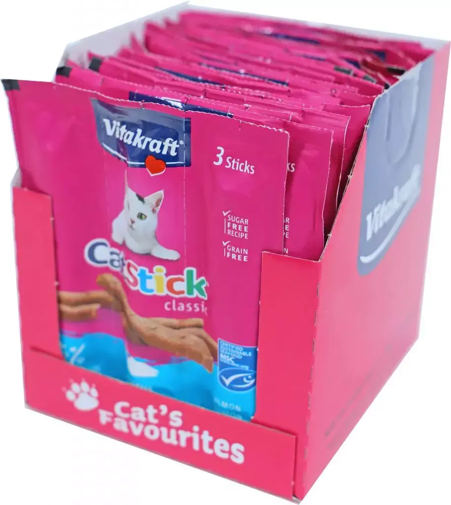 De Vitakraft Cat-Stick Mini Zalm is een zachte en uiterst smaakvolle beloningssnack die speciaal is ontwikkeld voor katten die dol zijn op vis. Met een indrukwekkend visgehalte van 95% krijgt je kat een pure, aromatische traktatie die een sterke aantrekkingskracht heeft. Elke stick is individueel vers verpakt, zodat de smaak en versheid optimaal behouden blijven tot het moment van geven. De zachte structuur maakt de snack geschikt voor katten van alle leeftijden.