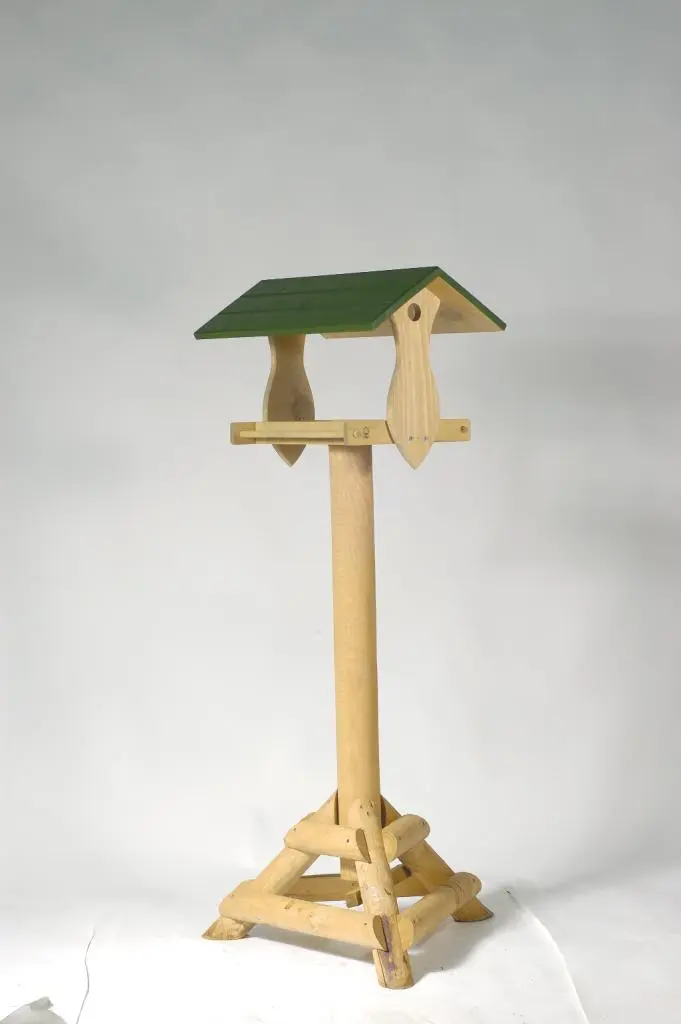 - Staande voedertafel voor zaden en zaadmengsels Gemaakt van FSC-gecertificeerd hout Het dak beschermt het voedsel (en de vogels!) tegen de regen Drainagegaten houden het voer vers