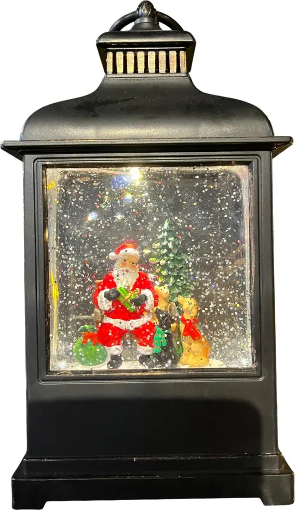 Waterlantaarn kersttafereel 13x8x27cm zwart