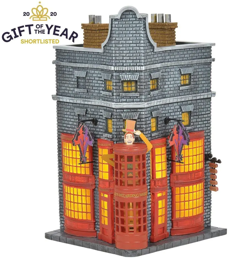 Oudere broers van Ron, de Weasley-tweeling Fred en George begonnen hun grapjeswinkel met producten "waar gegarandeerd gelach van komt". Gevestigd op nummer 93 in Wegisweg, vind je er wonderen zoals toverdrankjes, magische spullen voor dreuzels en praktische grapartikelen. Dit zorgvuldig met de hand vervaardigde en beschilderde Harry Potter-verzamelmodel heeft een EU 2-pins stekker. Genomineerd voor Gift of the Year 2020.