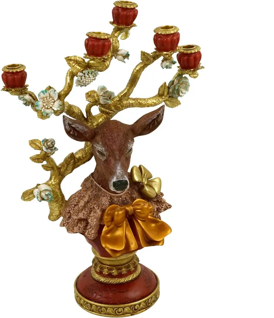 Werner Voss kandelaar polyresin hert 44x28x60cm multi