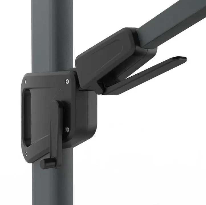- Schaduwvlak: Geeft de gehele dag door schaduw zonder de parasol te verplaatsen door T² achterwaartse & zijwaartse kantelbaarheid en de 360° draaibare voet.