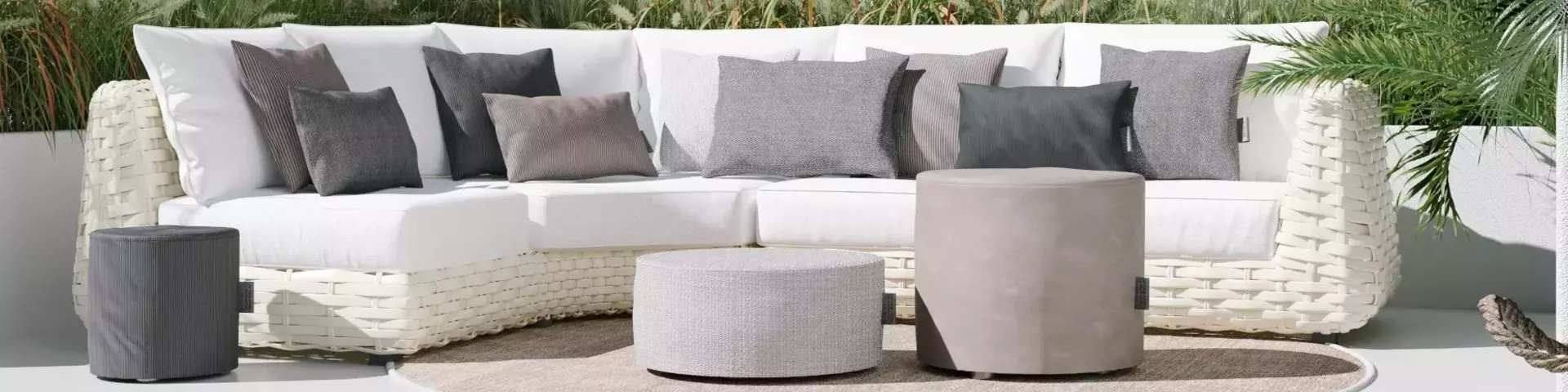 Rust en ontspanning zijn belangrijk, en daar horen fijne buitenmeubelen bij. De handgemaakte kussens, hockers en tapijten van KMCT zijn allemaal in Nederland gemaakt en van stevige en duurzame kwaliteit. Verkrijgbaar in verschillende stoffen, en geschikt voor binnen én buiten!